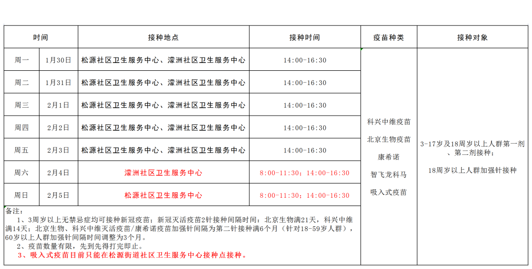2023年1月30日至2月5日慶元縣城區(qū)新冠疫苗接種安排