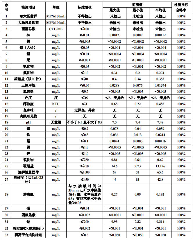 【水質(zhì)監(jiān)測結(jié)果】慶元縣竹口水廠2023年第三季度用戶水龍頭水質(zhì)監(jiān)測結(jié)果