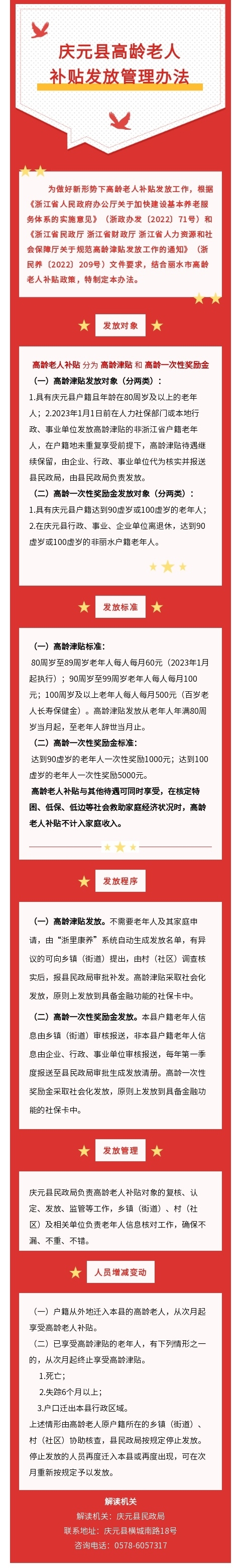 【文字+圖解】《慶元縣民政局 慶元縣財(cái)政局 慶元縣衛(wèi)生健康局關(guān)于印發(fā)慶元縣高齡老人補(bǔ)貼發(fā)放管理辦法的通知》的政策解讀