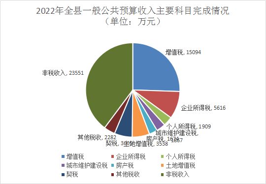 2022年是我國進(jìn)入全面建設(shè)社會主義現(xiàn)代化國家、向第二個百年奮斗目標(biāo)進(jìn)軍新征程的重要一年。在嶄新的歷史起點(diǎn)上,全縣財政工作以習(xí)近平新時代中國特色社會主義思想為指導(dǎo),認(rèn)真貫徹落實黨的二十大精神和中央經(jīng)濟(jì)工作會議精神,始終堅持穩(wěn)字當(dāng)頭、穩(wěn)中求進(jìn)工作總基調(diào),統(tǒng)籌疫情防控和經(jīng)濟(jì)社會發(fā)展,從嚴(yán)從緊加強(qiáng)收支管理,優(yōu)化支出重點(diǎn)和結(jié)構(gòu),兜住“三保”支出底線,增強(qiáng)重大戰(zhàn)略任務(wù)財力保障,強(qiáng)化預(yù)算約束和績效管理,堅決防范財政運(yùn)行風(fēng)險和地方政府債務(wù)風(fēng)險,努力實現(xiàn)積極的財政政策提升效能,更加注重精準(zhǔn)、可持續(xù)。全縣財政預(yù)算執(zhí)行情況良好,較好地促進(jìn)了全縣經(jīng)濟(jì)社會持續(xù)健康發(fā)展。