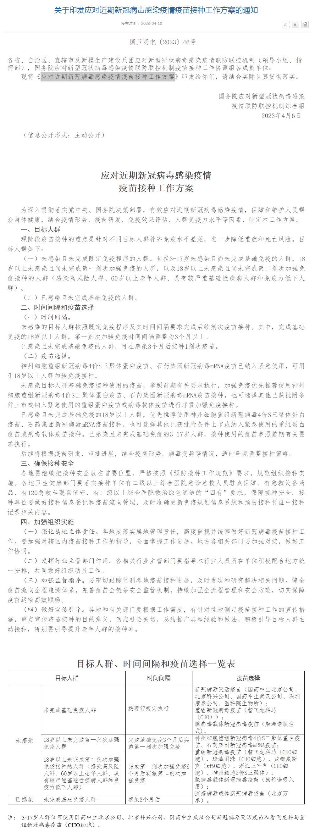 【中央部署】關于印發應對近期新冠病毒感染疫情疫苗接種工作方案的通知