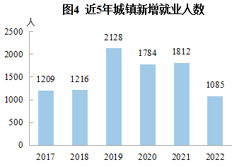 全年城鎮新增就業1085人,比上年減少727人。年末城鎮登記失業率為1.40%,3月末、6月末、9月末分別為1.98%、1.99%、1.45%,低于3.0%的調控目標。