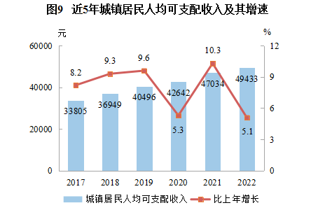 人均可支配收入 | 36455 | 5.3 | 49433 | 5.1 | 23759 | 5.3 |