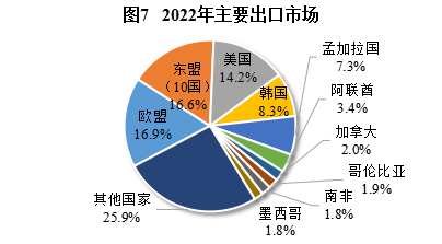 全年貨物進出口總額15.33億元,比上年下降51.2%。其中,出口15.29億元,下降51.2%;進口0.03億元,下降35.9%。主要出口貿易國家、組織(或地區)為歐盟、東盟(10國)、美國、韓國、孟加拉國、阿聯酋、加拿大、哥倫比亞、南非和墨西哥。