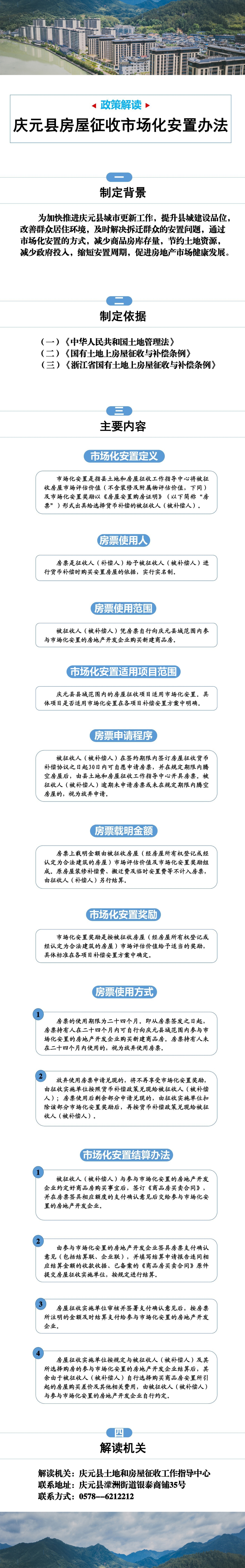 為加快推進慶元縣城市更新工作,提升縣城建設(shè)品位,改善群眾居住環(huán)境,及時解決拆遷群眾的安置問題,通過市場化安置的方式,減少商品房庫存量,節(jié)約土地資源,減少政府投入,縮短安置周期,促進房地產(chǎn)市場健康發(fā)展。