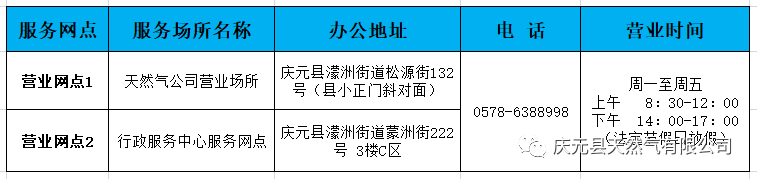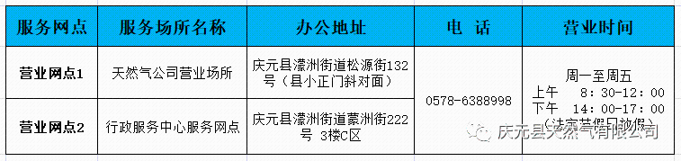 慶元縣天然氣有限公司業務辦理