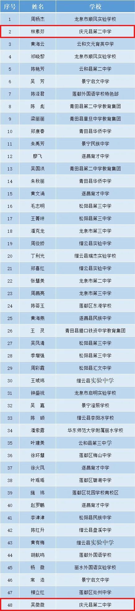 經過激烈角逐,慶元縣榮獲特等獎1個,一等獎3個,二等獎10個,優秀指導教師獎2個,此外,還獲得縣級團體三等獎,一起來看獲獎名單!