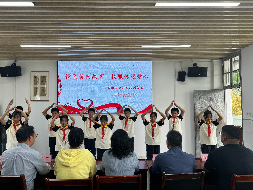 在捐贈儀式上,孩子們穿上新校服,臉上洋溢著幸福的笑容,表演了手勢舞《感恩的心》,表達了對愛心人士的感謝。黃田鎮學校校長方奇向黃田商會代表頒發了榮譽證書,這份證書承載著深深的感激,也象征著社會責任的傳遞。