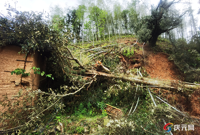 15日6時(shí)左右,群測(cè)群防員沈中文在巡查中發(fā)現(xiàn)該幢房屋發(fā)生滑坡地質(zhì)災(zāi)害,帶動(dòng)坡面樹(shù)木下滑,損毀房屋部分屋頂。
