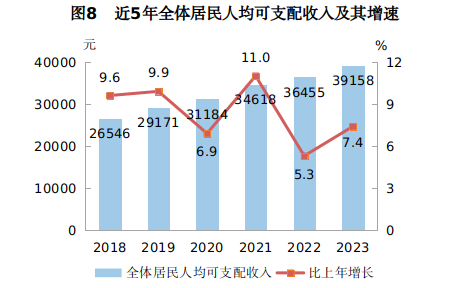 人均可支配收入 | 39158 | 7.4 | 52102 | 5.4 | 25874 | 8.9 |