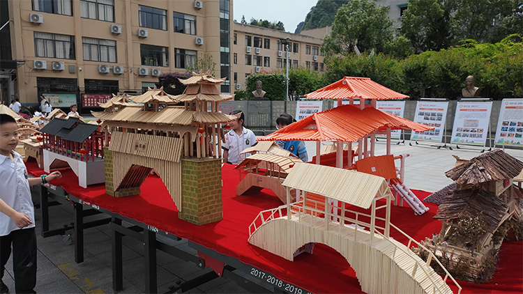 近年來,江濱小學高度重視廊橋文化傳承保護,連續多年舉辦廊橋文化節。通過開展百生講百橋、百生搭百橋、百生繪廊橋、百生寫百橋、百生訪百橋等活動,讓非遺文化在校園“生根發芽”。
