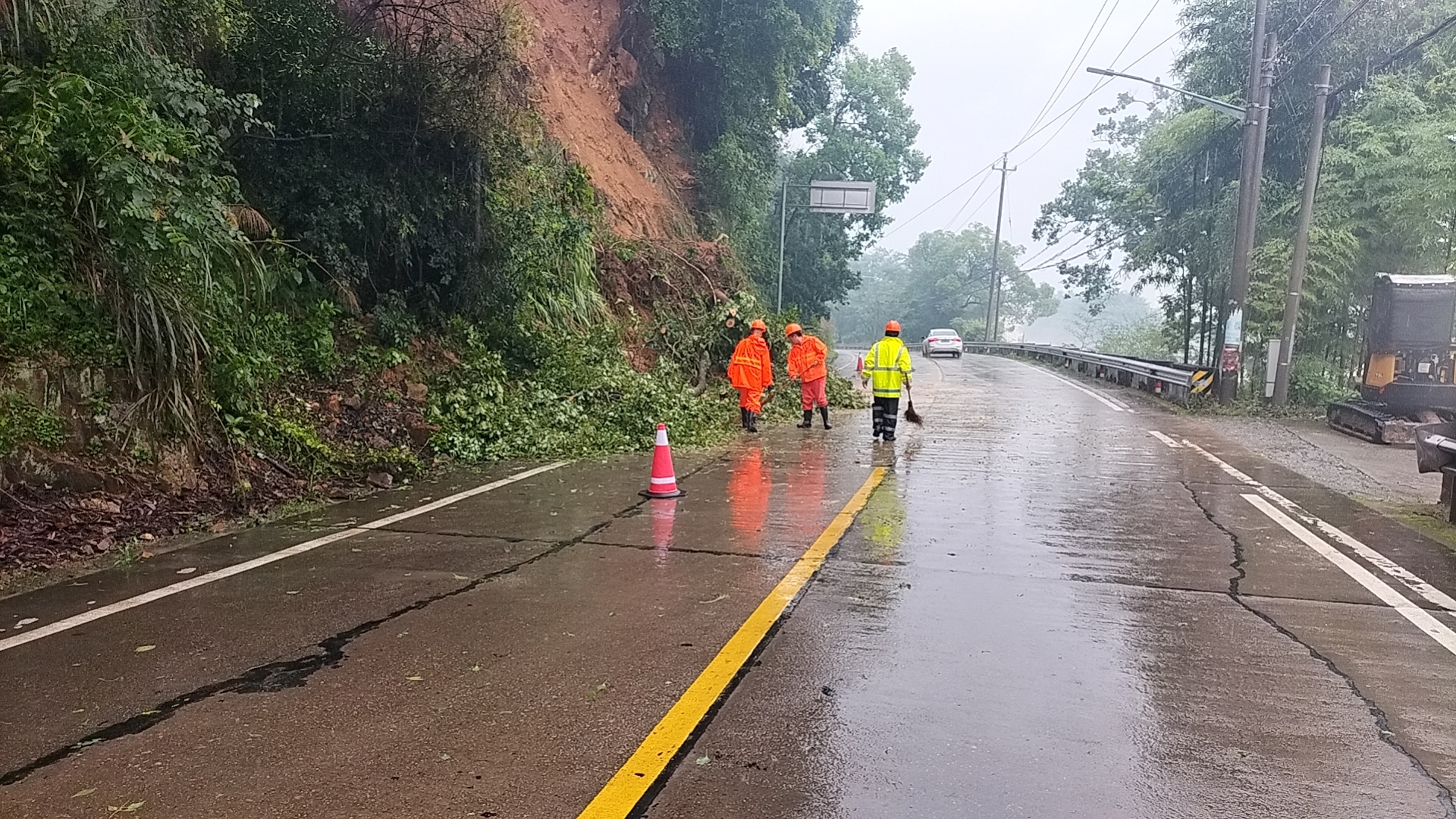 災情發生后,慶元縣交通運輸局第一時間啟動應急搶險預案,聯合沿線鄉鎮,出動機械車輛15臺次,搶險人員86人次,及時清除道路塌方。