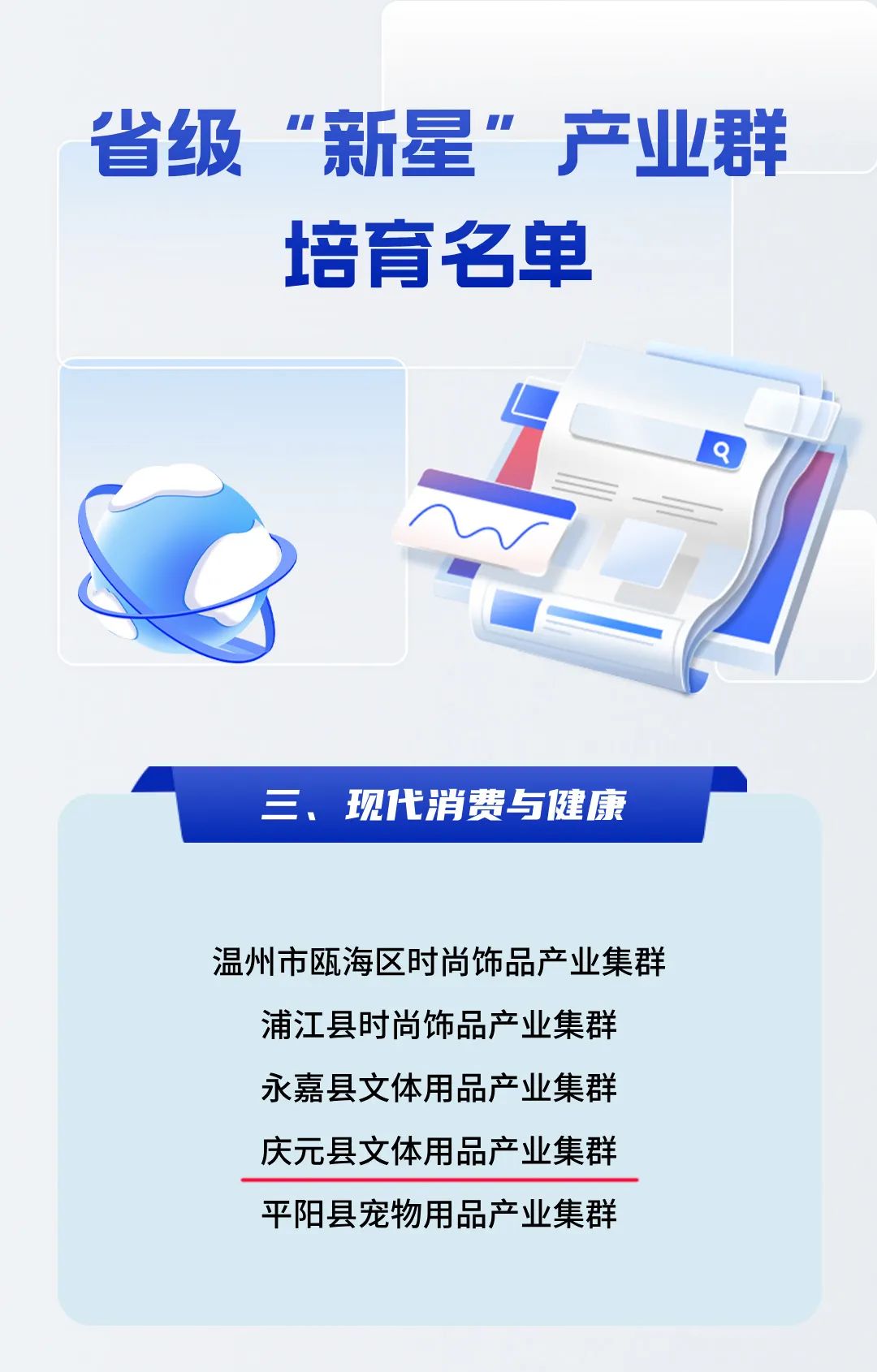 近日,浙江省經(jīng)濟(jì)和信息化廳公布了第三批省級(jí)“新星”產(chǎn)業(yè)群培育名單,慶元縣文體用品產(chǎn)業(yè)集群榜上有名。