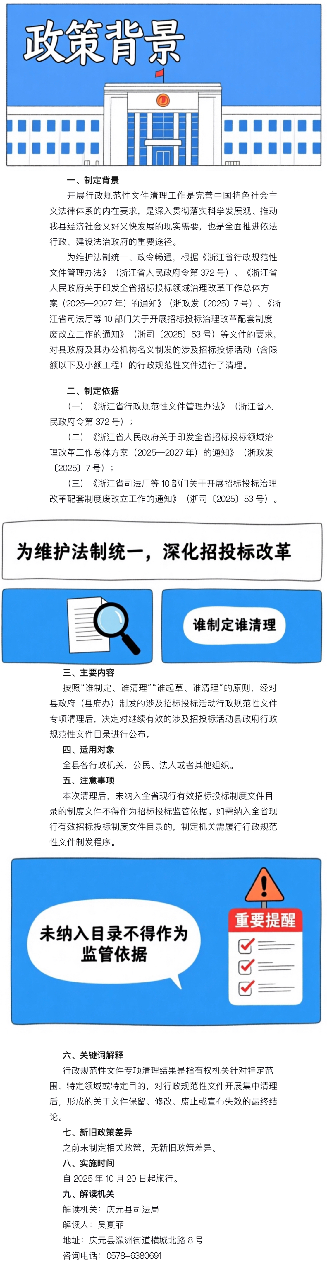 【圖解】《慶元縣人民政府辦公室關于公布慶元縣人民政府(辦公室)涉及招投標活動行政規范性文件清理結果的通知》的政策解讀