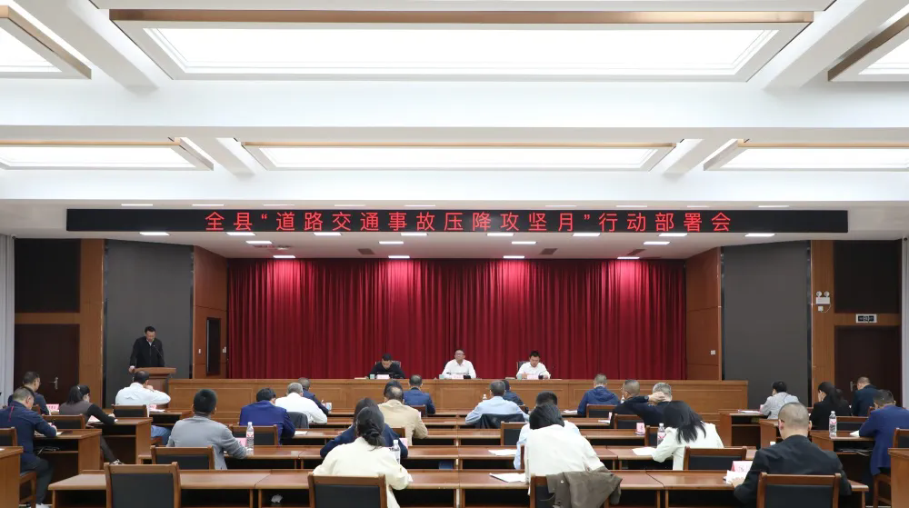 會議通報近兩年全縣道路交通安全形勢,解讀“道路交通事故壓降攻堅月”行動方案,有關單位作表態發言。