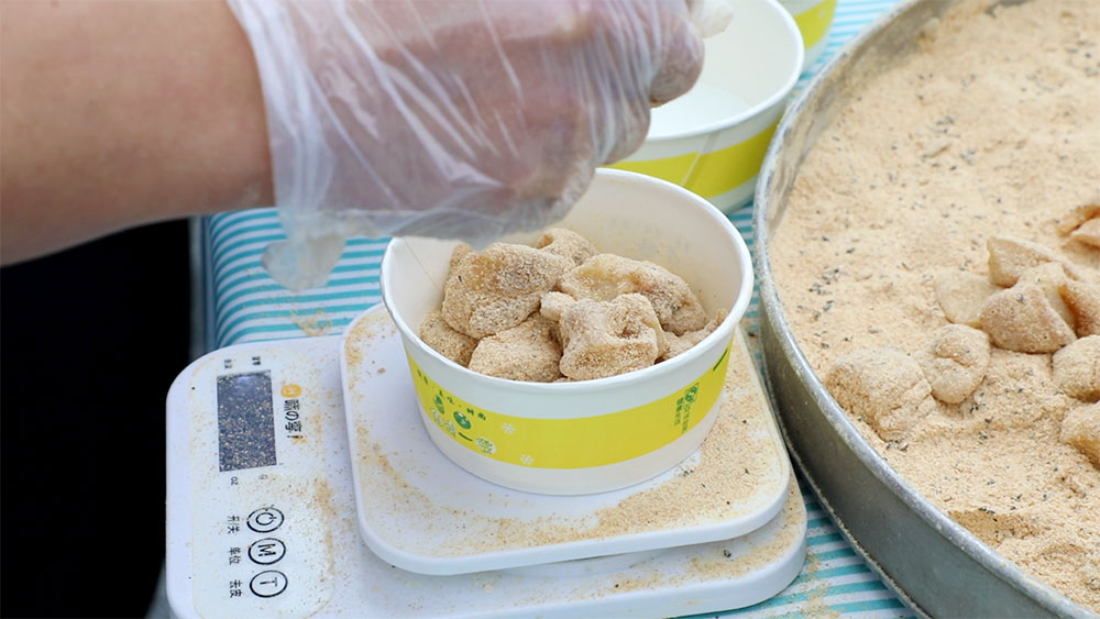 在眾多非遺展示中,幾種特色美食尤為引人注目。黃粿獨特的制作工藝引得同學們駐足,洪嘉辰同學還體驗了打黃粿,“一開始挺難的,后來越打越有意思,越打越爽!”瘦肉丸現做現煮,肉質鮮嫩,湯頭醇厚,攤位前排起長隊;糖畫攤位前更是驚嘆連連,手藝人以勺為筆,熔糖為墨,頃刻間便勾勒出飛禽走獸;麻糍香甜軟糯,裹著黃豆粉的香氣,傳遞著傳統糕點的溫情。