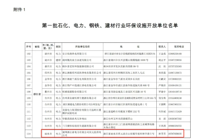近日,生態環境部辦公廳公布了第一批“新四類”(石化、電力、鋼鐵、建材行業)環保設施開放單位名單及第五批全國環保設施和城市污水垃圾處理設施開放單位名單,慶元1家“新四類”單位名列其中。