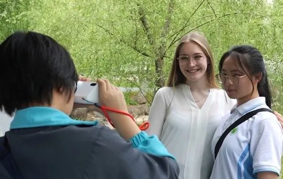 當(dāng)?shù)聡鴮W(xué)生踏入慶元中學(xué)的校園,立刻成為了焦點。慶中學(xué)子們以燦爛的笑容和溫暖的問候迎接遠(yuǎn)方的客人。“來到慶元,我特別興奮!早就聽說這里的學(xué)生熱情友好,我特別期待在慶元的旅程。”來自史坦普高級文理中學(xué)的學(xué)生Finley興奮地說道。在結(jié)對伙伴的帶領(lǐng)下,德國學(xué)生們漫步校園,他們紛紛拿出拍立得和手機(jī),在學(xué)校的池塘邊、亭子旁定格下一張張珍貴的合影。“慶元中學(xué)校園很大,我特別喜歡這個池塘,在我們學(xué)校都只有樹木,所以來到這里我們感到很震驚,但是真的感覺很酷。”Finley特別開心地向記者分享著自己的感受。