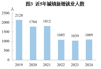 全年城鎮(zhèn)新增就業(yè)1089人,比上年增加50人。年末城鎮(zhèn)登記失業(yè)率為2.43%,3月末、6月末、9月末分別為2.51%、2.16%、2.24%,低于3.0%的調(diào)控目標(biāo)。