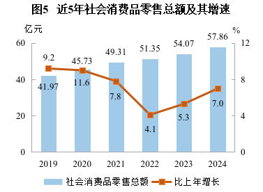 政策激發(fā)消費(fèi)潛力。全年謀劃“兩重”“兩新”項(xiàng)目55個(gè),爭取資金2785萬元。設(shè)備工器具購置投資比上年增長40.3%,快于面上投資增速22.8個(gè)百分點(diǎn),對全部投資增長的貢獻(xiàn)為21.3%。發(fā)放家電、家裝等領(lǐng)域消費(fèi)補(bǔ)貼858萬元,撬動(dòng)銷售收入4468萬元。限額以上單位零售額中,智能家用電器和音像器材零售額增長129.6%。快遞業(yè)務(wù)總量1543.15萬件,增長28.3%;快遞業(yè)務(wù)收入847.71萬元,增長12.1%。