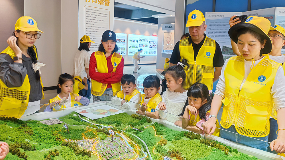 在阜梁橋上,三字經(jīng)文化研究會(huì)主理人葉彩玲為研學(xué)團(tuán)講解了《三字經(jīng)》作者王應(yīng)麟和阜梁橋的故事,以及阜梁橋所展現(xiàn)的藻井、八卦、移步換景、石獅子等廊橋文化,為孩子們普及傳統(tǒng)文化知識(shí)。在黃壇村黨群服務(wù)中心,研學(xué)團(tuán)參觀竹口鎮(zhèn)文化展陳,當(dāng)講解員講到王應(yīng)麟和《三字經(jīng)》區(qū)塊的時(shí)候,研學(xué)團(tuán)孩子們不由自主齊聲吟誦起了“人之初,性本善,性相近,習(xí)相遠(yuǎn)……”