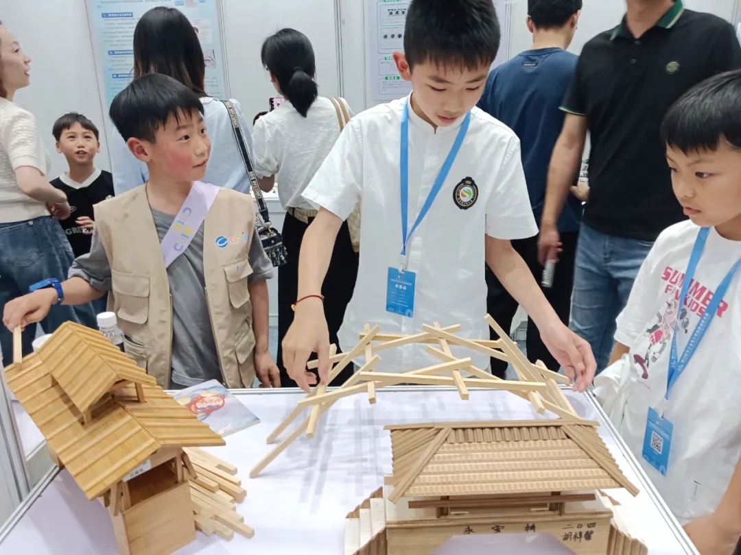 林子洋同學的作品為《探究廊橋千年不倒的秘密》。他通過反復搭建實驗模型、查閱文獻資料,揭示了廊橋“千年不倒”的核心原理:編梁木拱受壓形成的拱形結構、底座“八字形”對稱設計以及桁架節點的精密銜接。為進一步驗證理論,他在木棒上添加卡口模擬傳統榫卯結構,最終成功搭建出可承載一人重量的廊橋模型。答辯現場,他搭建廊橋模型,生動闡釋了傳統技藝與現代科學的融合,為文化遺產保護提供了創新思路。