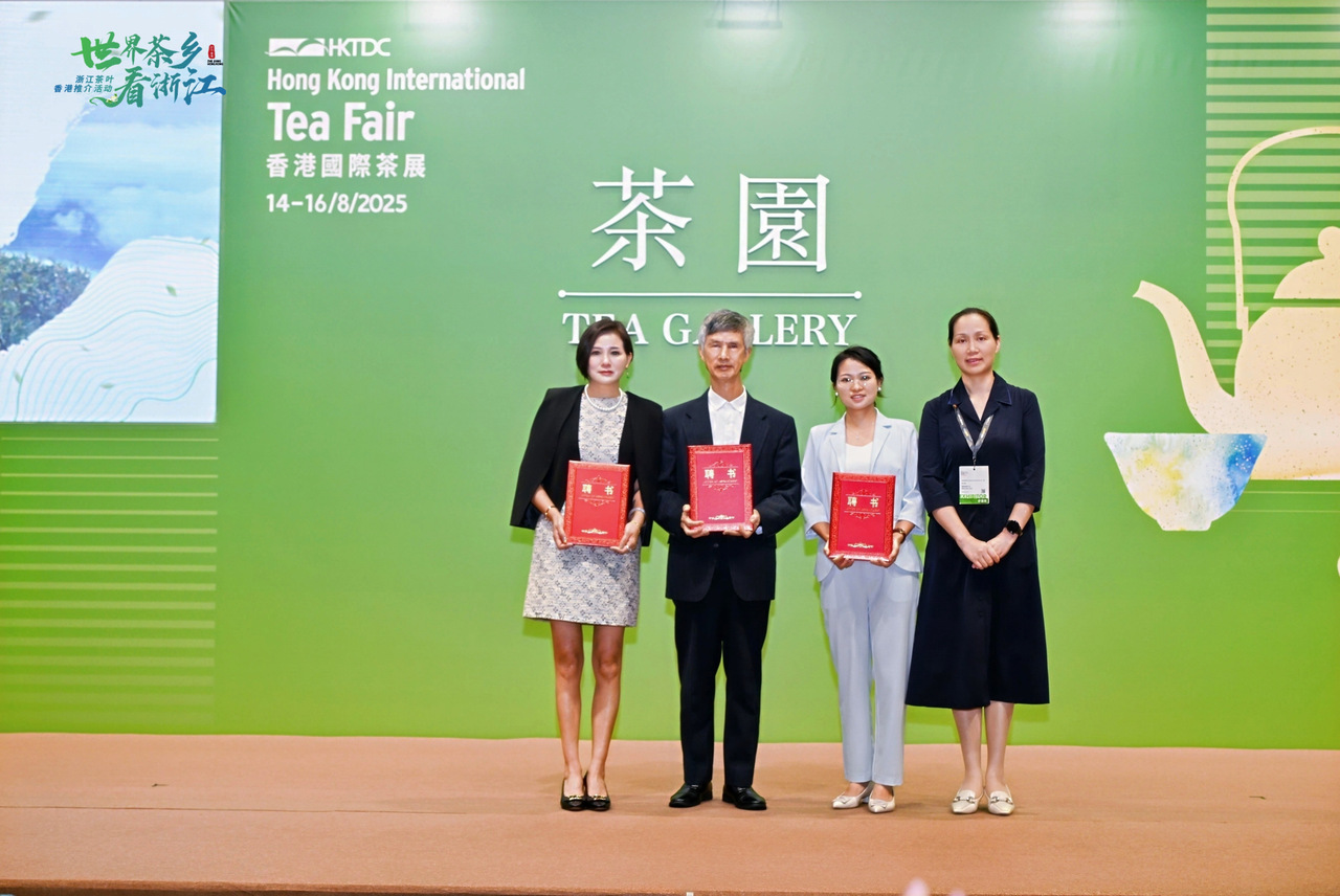 活動現(xiàn)場“慶元荒野茶宣傳大使”聘任儀式舉行。慶元縣人民政府副縣長李穎代表慶元縣人民政府為香港麗水同鄉(xiāng)會會長吳華生、香港慶元同鄉(xiāng)會會長葉真英、香港慶元同鄉(xiāng)會副會長朱慧玲頒發(fā)聘書。