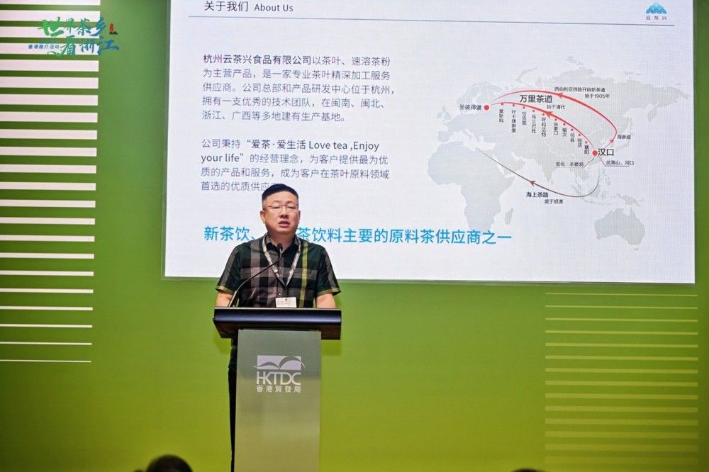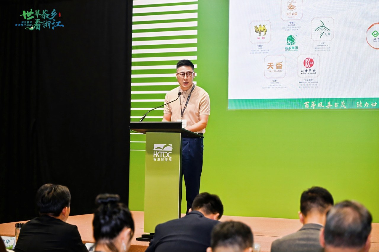 浙茶集團品牌發(fā)展部經(jīng)理何磊以“來自浙江的一抹綠意”為主題,從企業(yè)概況,品牌矩陣兩方面進行推介。他特別指出,獅峰作為浙茶集團旗下核心品牌,自上世紀(jì)80年代以來備受香港市場青睞,高峰期年銷售量達到100噸左右。