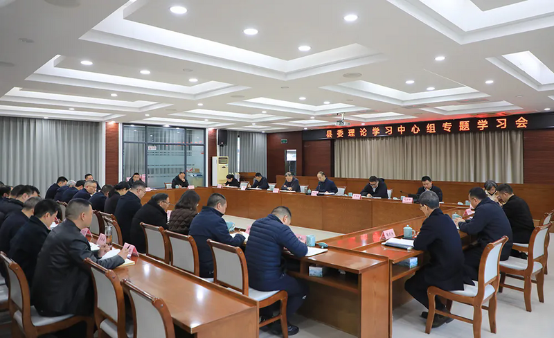 縣委書記田健暉主持會議并講話,譚國慶、吳青松、孔金峰等縣委理論學習中心組成員出席。