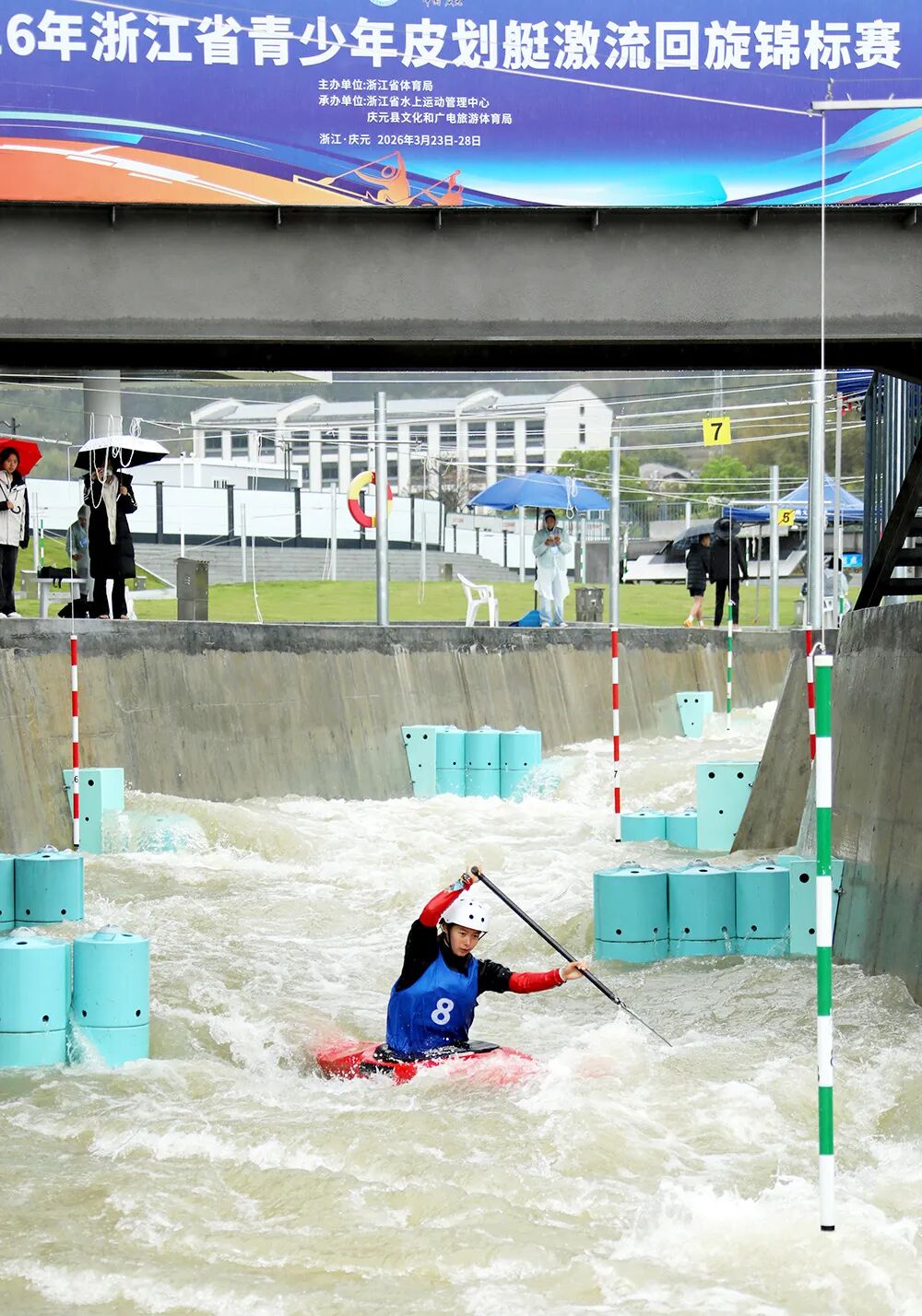 驟雨急風,白浪翻涌。3月26日上午,2026年浙江省青少年皮劃艇激流回旋錦標賽在慶元縣水上運動中心開賽。這座全國第六個、長三角地區領先的奧運標準激流回旋場地,再次迎來省級青少年頂尖賽事的激烈角逐。