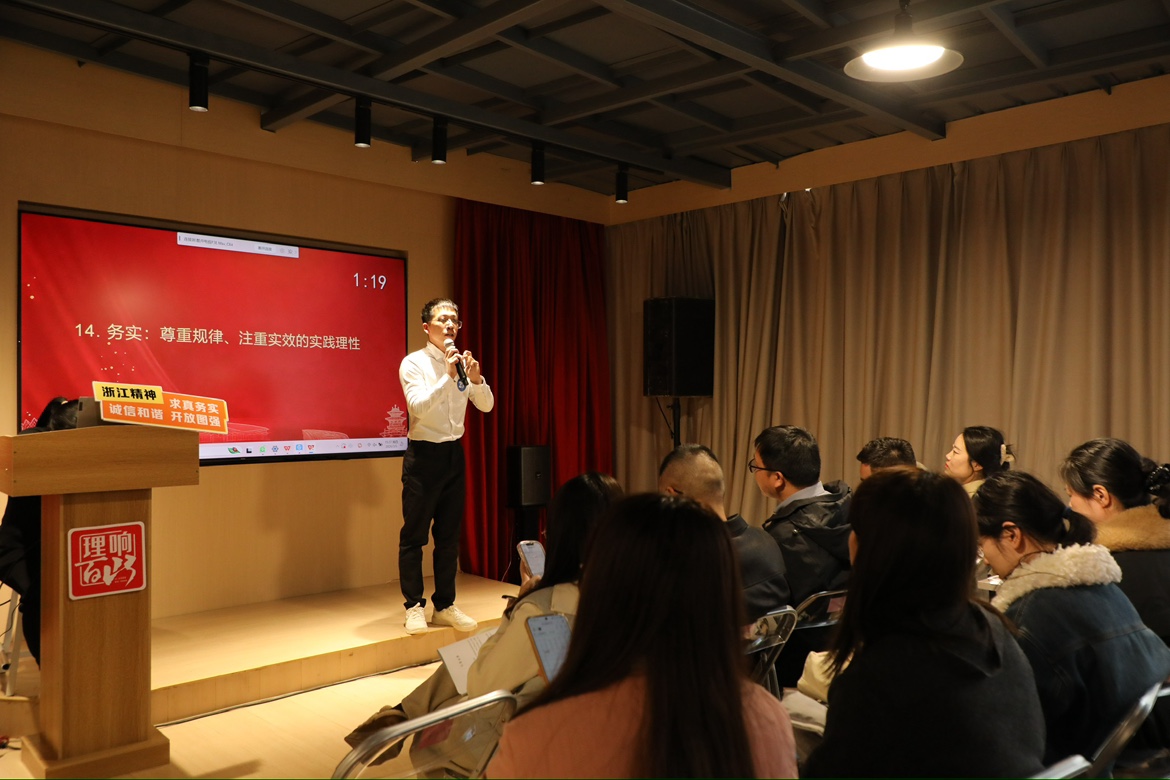慶元的山,曾是我們的“淤點”;但浙江精神,讓這山,變成了“金山銀山”。臺下不也有基層干部聽邊點頭,有人跟同伴說:“他把浙江精神講成了大家身邊的故事,村民聽得進、記得住、也聽得明白。”