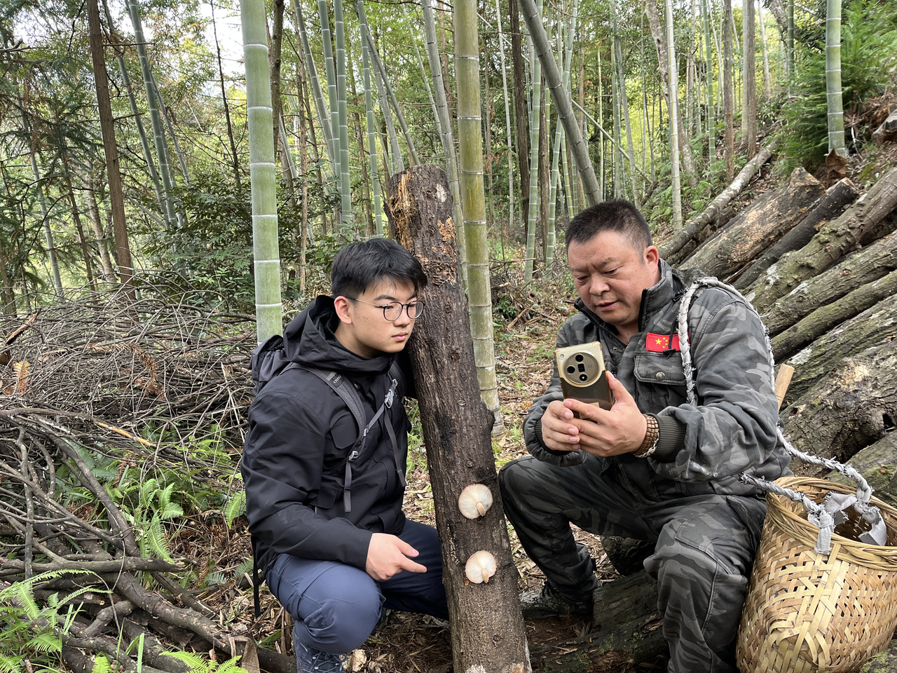 “這可是好教材,我拍點素材,以后可以給網友上上課。”毛哥指著腳下潮濕的土地,拿出手機拍攝:“家人們,香菇就喜歡這種軟得像海綿的地!大家以后就挑這種地種菇。”再跟著毛哥往里走,只見一根長約20米的樹干上,種菇人用剁花法留下的刀痕深淺有序,幾朵野生小香菇正探出褐色的腦袋。