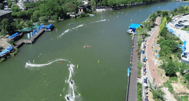 開(kāi)幕式結(jié)束后,與會(huì)領(lǐng)導(dǎo)和嘉賓共同觀(guān)看了精彩的水上飛人表演和練習(xí)賽。運(yùn)動(dòng)員們?cè)谇宄旱乃稍聪嫔峡v情馳騁,以高超的技藝、飽滿(mǎn)的激情和出色的體能,為現(xiàn)場(chǎng)觀(guān)眾呈現(xiàn)出一場(chǎng)力與美交織的水上運(yùn)動(dòng)盛宴。