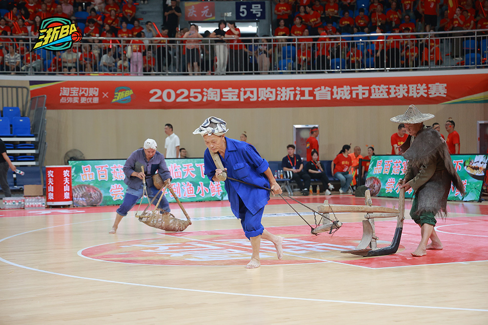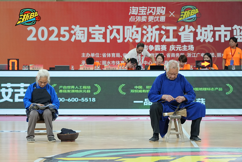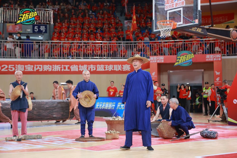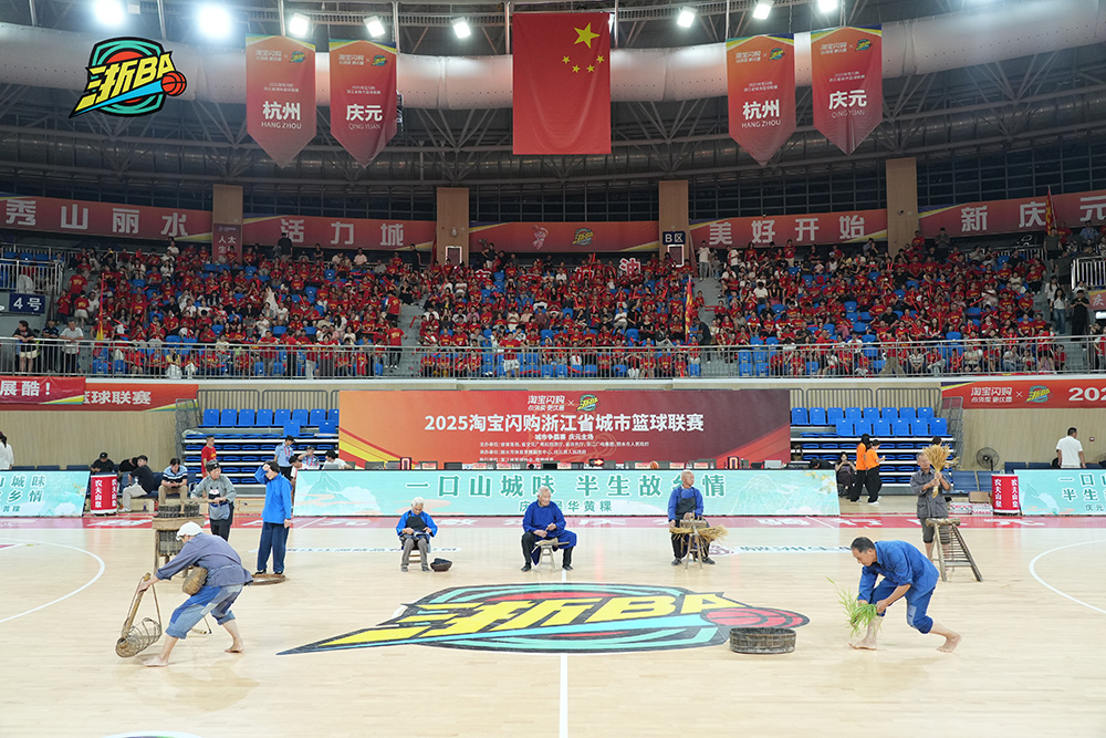 9月14日晚,“浙BA”城市爭霸賽慶元主場對戰杭州隊中場時段,一場滿是歲月溫度的“農活秀”驚艷全場——擁有45年歷史的月山春晚,攜經典節目《一個村的集體記憶》首次登上省級體育賽場。節目演出陣容尤為特殊:演員以60歲以上的為主,年齡最小的僅10歲,年齡最大的是參與農耕場景展示的98歲高齡的吳友達,用布滿皺紋的雙手與堅定的眼神,在籃球賽場奏響農耕文化傳承的動人樂章。